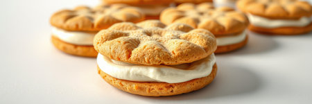 Delicious cream-filled cookie displayed against a clean white background for an appealing treat visual