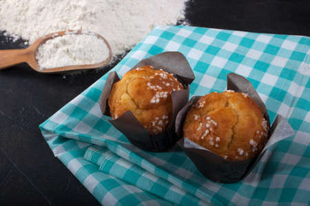 Fresh cupcake on the table baked at home. Delicious Breakfast fo