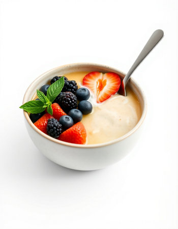 Creamy Yogurt with Berries and Granola Isolated on White Background