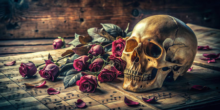Vintage Still Life: Skull, Dried Roses & Sheet Music