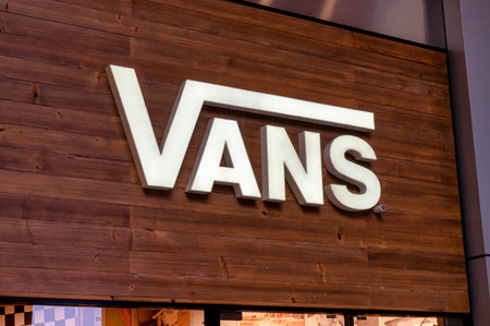 Belfast, UK- Feb 20, 2022: The sign for Vans store at Victoria Squar Shopping Centre in Belfast Northern Ireland.