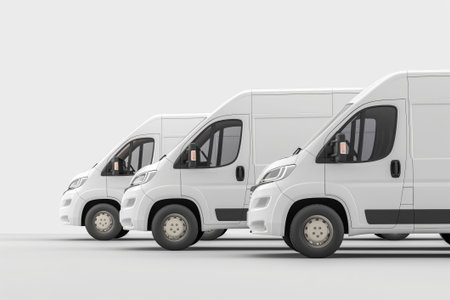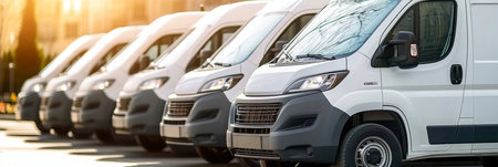Neat row of white delivery vans, representing reliable transport service with ample text space