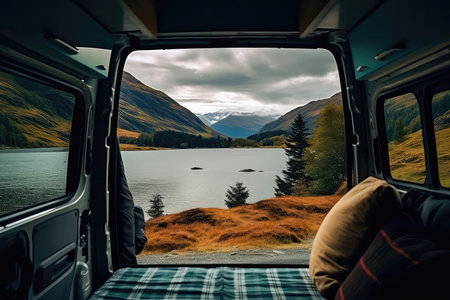 Breathtaking View Of Scottish Loch From The Back Of Campervan