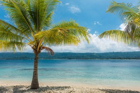 Beach with palm trees, sunny tropical Efate island, Vanuatu