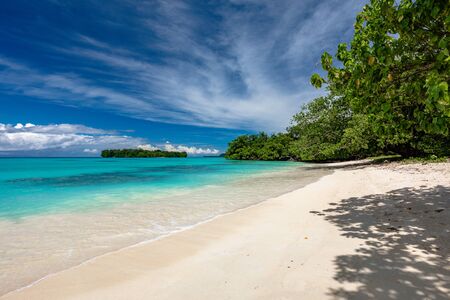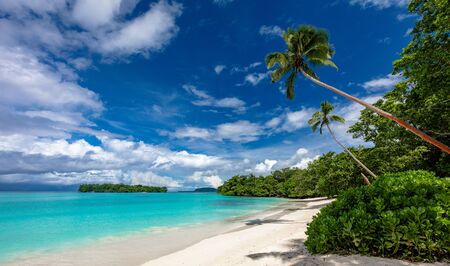 Amazing Port Orly sandy beach with palm trees, Espiritu Santo Island, Vanuatu.