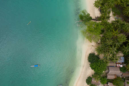 Aerial view of beautiful tropical beach and sea with coconut palm tree for travel and vacation