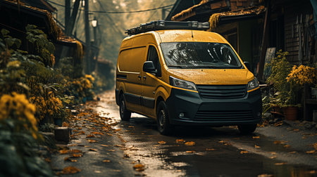 Delivery van in motion. Fast delivery, transportation, shipping themes. Motion blur adds dynamism.