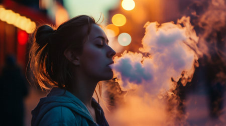 Girl vaping,Vaper blowing smoke from mouth,Electronic cigarettes and girl close-up,oil vaper.