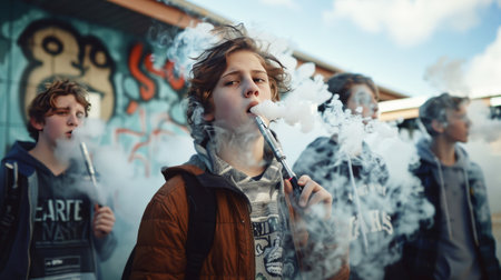 Substance abuse, addiction and bad habits concept. Young people smoking cigarettes and using drugs outdoors
