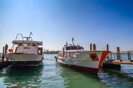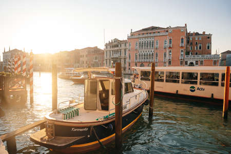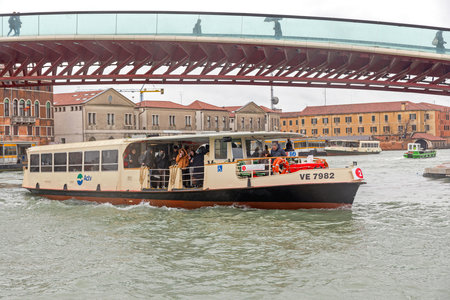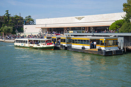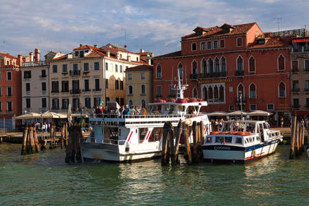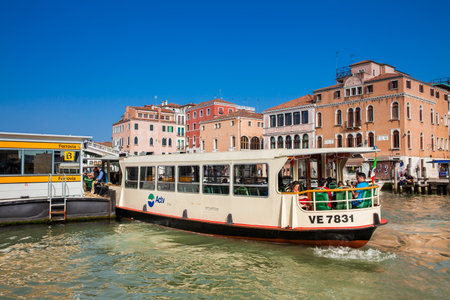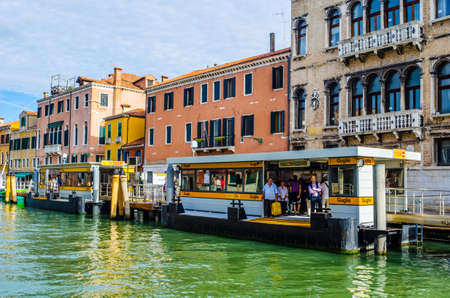 VENICE, ITALY, SEPTEMBER 20, 2015: Vaporetti is a system of public transportation in italian city venice and those water trams are having stations on small piers throughout the city center