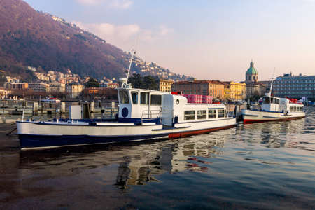 Nago Torbole, Lago di Garda (Lago Benaco), Italy - June 18, 2019. A tourist boat on Lake Garda in Torbole resort.