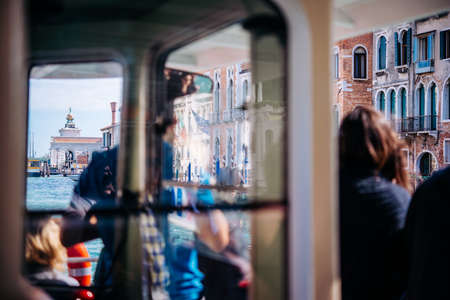 View of Grand Canal and the old buildings seen from the vaporetto in Venice, Italy