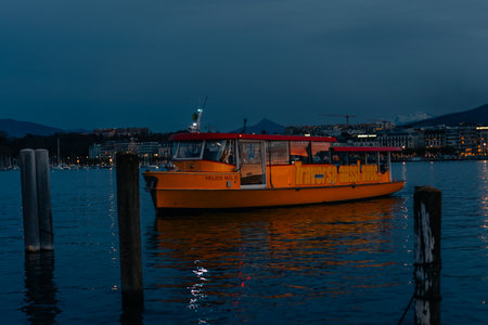 yellow Ferry in Villeneuve on Lake Geneva, Vaud, Switzerland, Europe - 2 Oct 2025. High quality photo