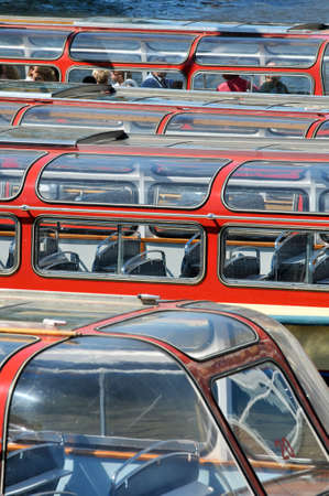 VENICE, ITALY - APRIL 27, 2017: view of water buses with tourists in the waters of Venice, Italy