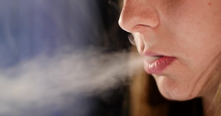 Girl vaping,Vaper blowing smoke from mouth,Electronic cigarettes and girl close-up,oil vaper.