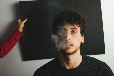 background tests for young man smoking portrait