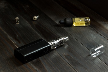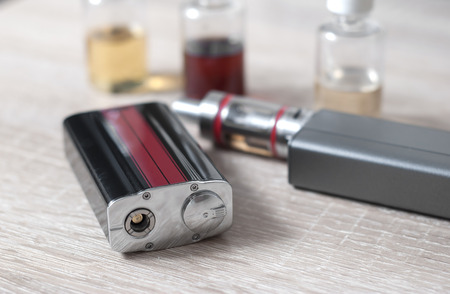 vaping devices or electronic cigarette on a wooden background