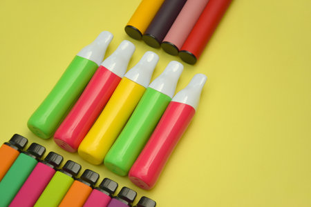 Disposable electronic cigarettes on yellow background