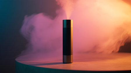 Dynamic display of electronic vaporizers with a backdrop of multicolored smoke