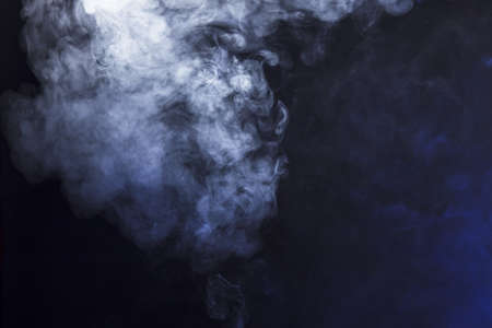 Vape smoke clouds isolated on black background. Hot vape liquid splash in vape coil. Nice aromatic cloud. Low light photo. Underexposed photo in a low key style.