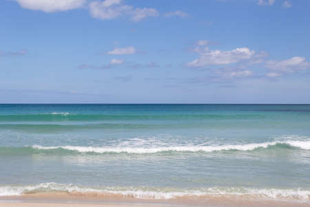 Background of a beach horizon with clouds, the sea with small waves and a bit of sand on the shore