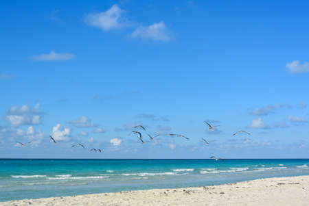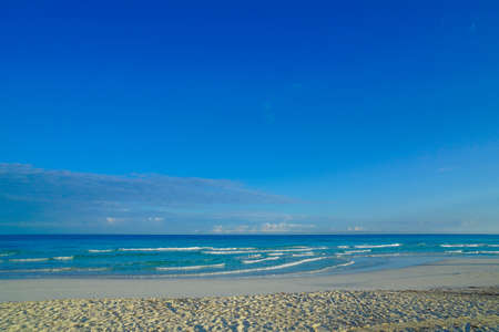 Sea shore on the Caribbean beach in the Area Hoteleria in Cancun Quintana Roo Mexico.