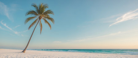 AI Generated. Serene Beach with Solitary Swaying Palm Tree