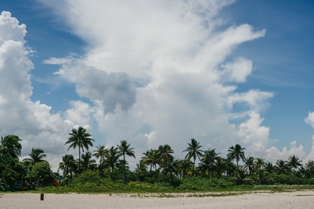 palm trees, beach umbrellas, beach, ocean on the Atlantic coast, Cuba