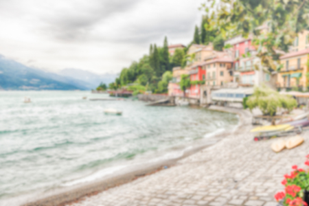 Defocused background of the picturesque village of Varenna over the Lake Como, Italy. Intentionally blurred post production for bokeh effect