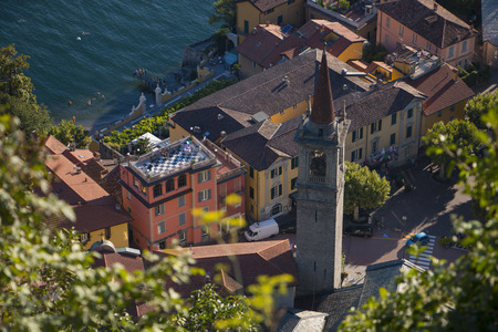 Red roofs of ancient houses on the shores of Lake Como. Varenna, Italy
