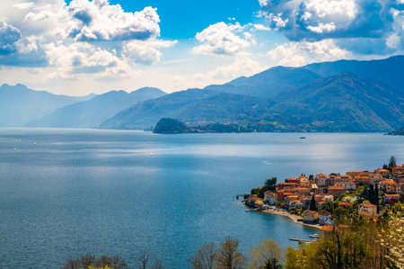 Beautiful summer view on Lake Como shore in Lombardy Region, Italy