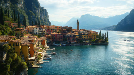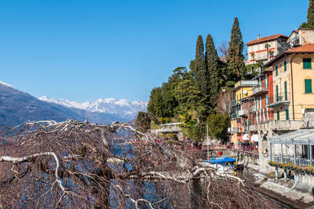City of Varenna, Italy. A picturesque tourist spot in the mountains. Beautiful city, sunny day. A commune in Italy, located in the Lombardy region, in the province of Lecco.