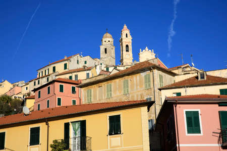 Cervo (IM), Italy - December 30, 2017: Houses and Cervo village, Italian Riviera, Imperia, Liguria, Italy
