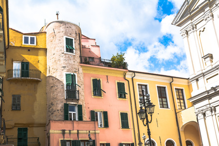 Architecture of Finalborgo, the historical center of Finale Ligure on the Italian Riviera in the province of Imperia, Liguria, Italy.