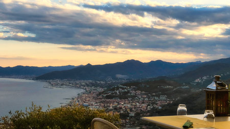 Alassio village seashore liguria Italy at sunset