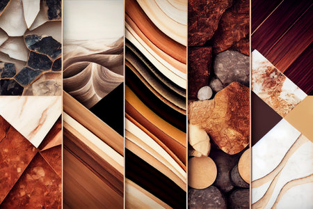 Abstract collage poster made of various marbles, ai generative