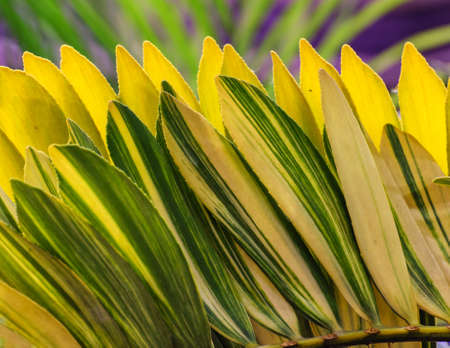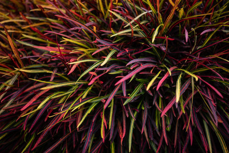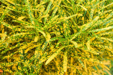 Fire croton or codiaeum variegatum foliage. Narrow leaves of Zanzibar croton
