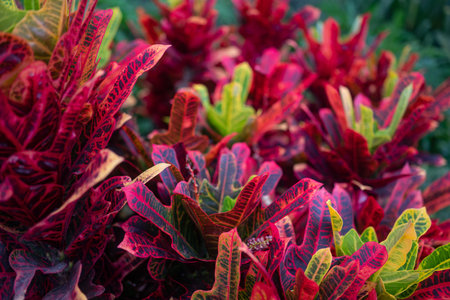 Vibrant croton leaves in diverse colors and patterns.