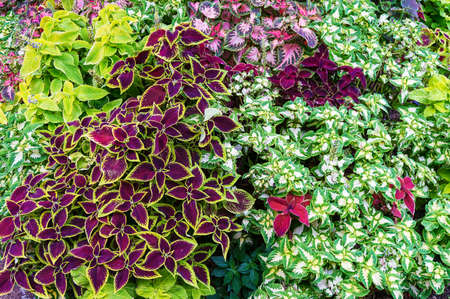 Bright decorative plants with ornate leaves. Gardening background