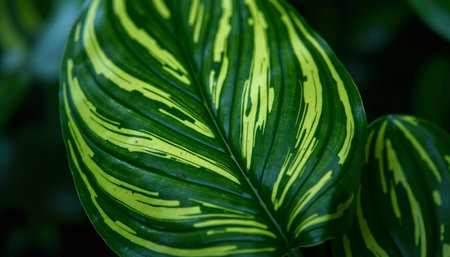 This close-up image showcases the intricate veining patterns on a tropical leaf.