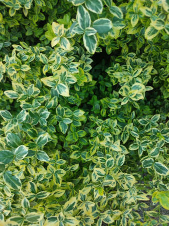 Closeup yellow and green leaves of euonymus fortunei.