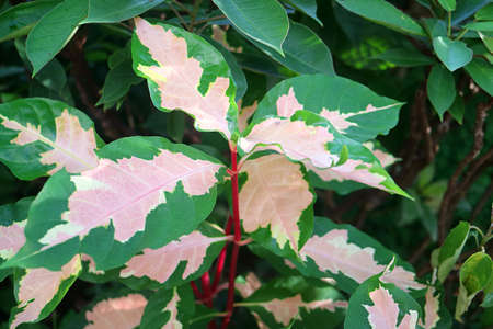 Leaves of Aglaonema variegata, ornamental plant