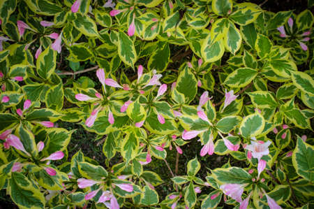 Early spring Old Fashioned Weigela florida variegata flowers