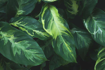 Close up of green and yellow variegated leaves texture background.