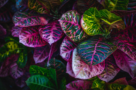 Colorful Alternanthera Plant Texture from Above with Lush Botanical Pattern, Decorative Garden Foliage for Eco-Themed Backgrounds and Nature-Inspired Design