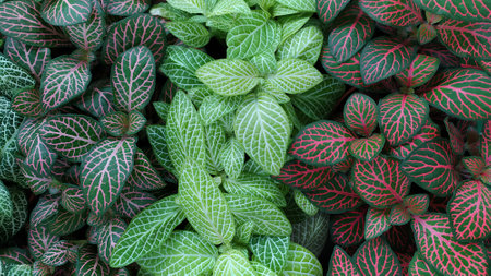 Different color plants of Fittonia is a decorative foliage plant of tropical region.