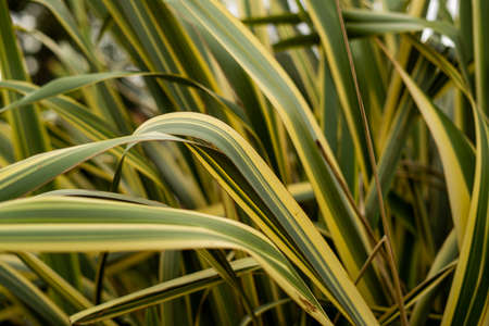 lakeside foliage plants, versicolor arundo donax, giant reed in summer, beautiful waterscape garden background greening