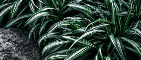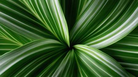 A stunning close-up of green and white striped leaves showcases intricate textures and patterns, perfect for evoking serenity in any natural or decorative context.