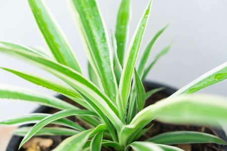 Closeup spider plant or Chlorophytum comosum in pot with water drop