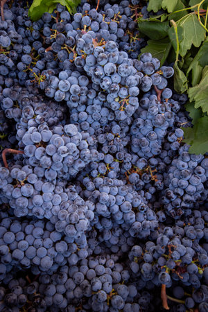 Wine making and winery concept, Fresh grape bunches for making wine, at vineyard